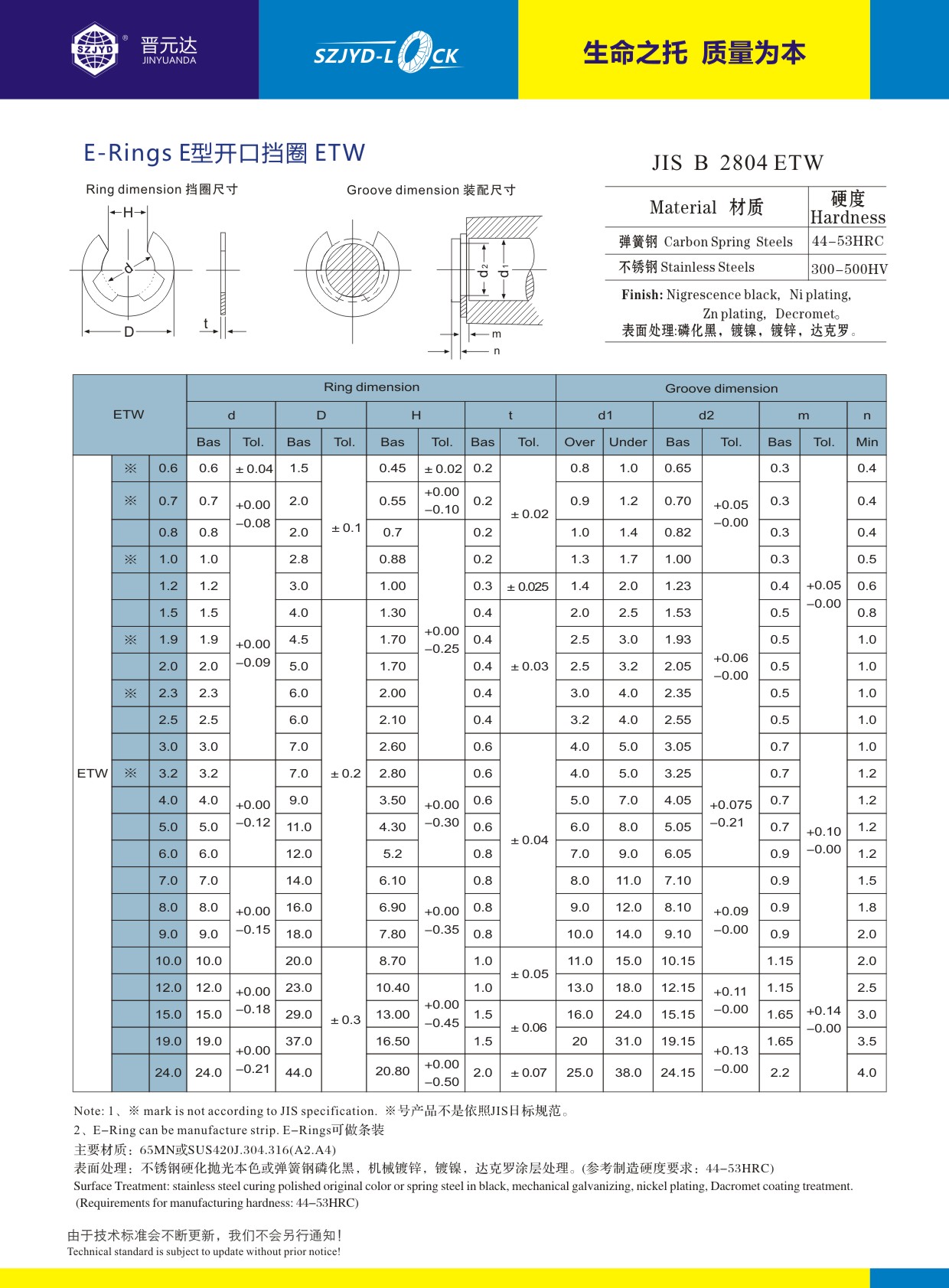 日標(biāo)JIS2804開口擋圈,使用65MN.C67S彈簧鋼剪切沖壓,經(jīng)拋光后硬化處理,表面采用磷化黑或機(jī)工鍍鋅處理!瑞士模走絲精密模具開發(fā),精密度可以做到M0.6規(guī)格!還可根據(jù)用戶要求訂制特殊尺寸型號(hào)!史特牢專注精品擋圈設(shè)計(jì)制造!